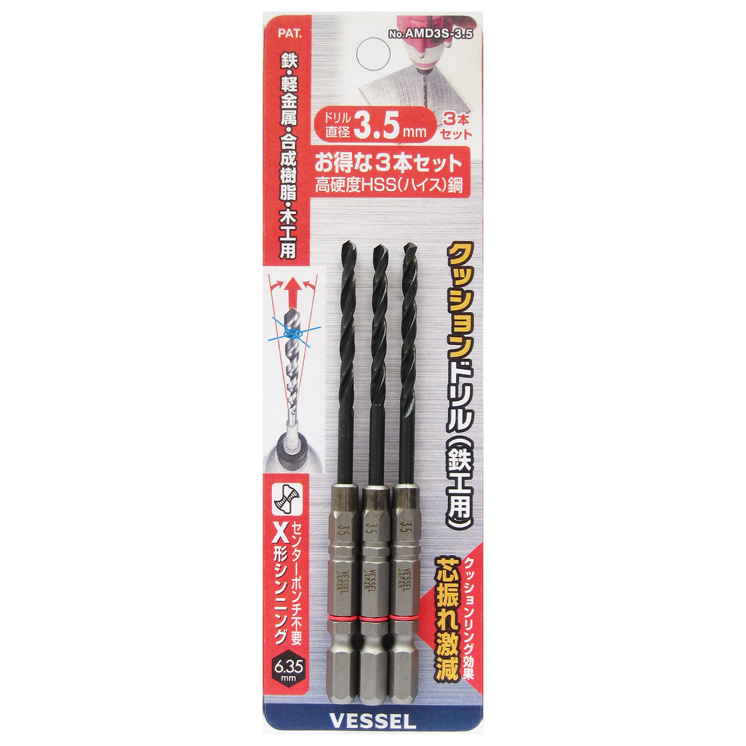 緩沖鉆頭(鐵工用)3支裝 No.AMD3S-3.8(Φ3.8mm 3支)