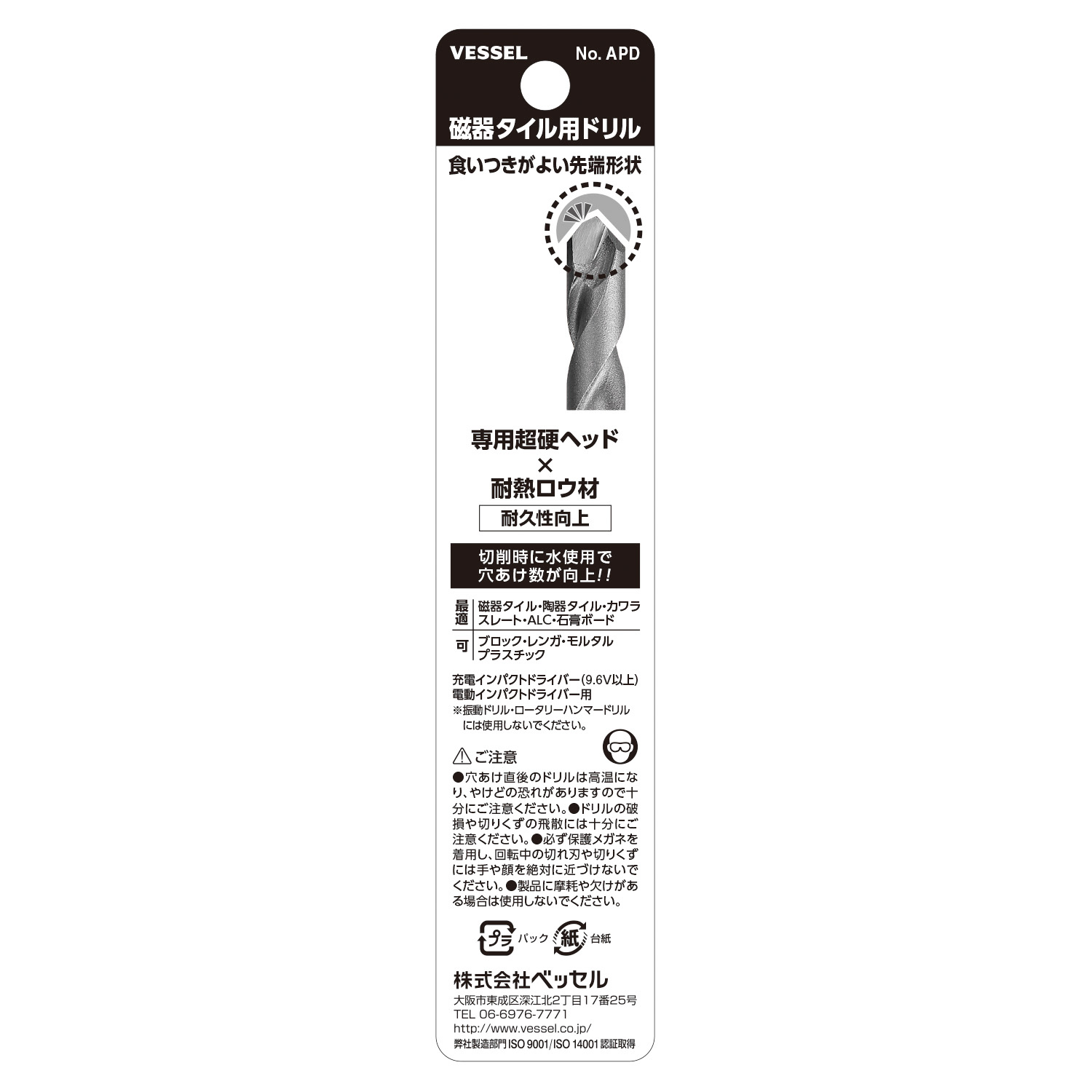 | 標示 | 刀尖的分類 | 軸直徑mm | 鉆頭槽長mm | 主體總長mm | 主體重量g | 內包裝數量 | 外包裝數量 | 日本JAN條形碼 |