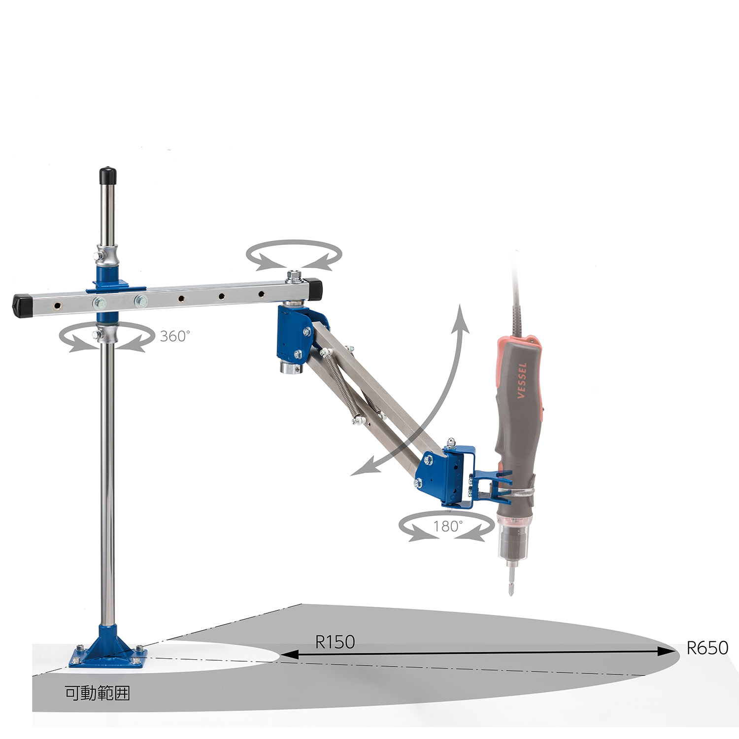 ●工具安裝部可旋轉,方便在移動較多的作業中操作工具。
