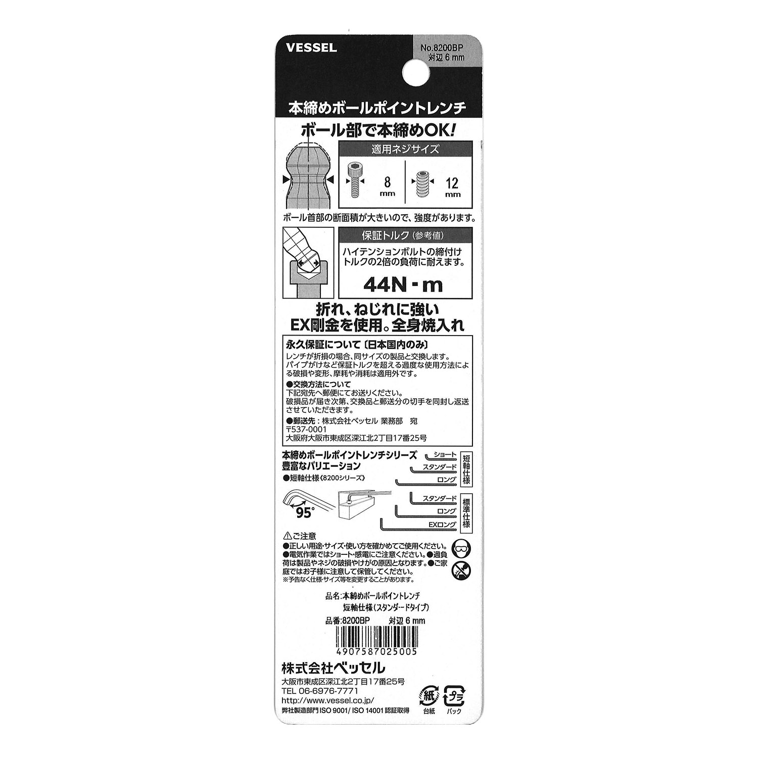 標示 主體總長mm L型扳手的短邊尺寸mm 主體重量g 內包裝數量 外包裝數量 日本JAN條形碼