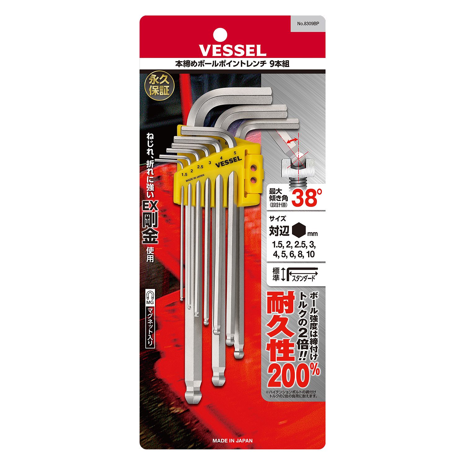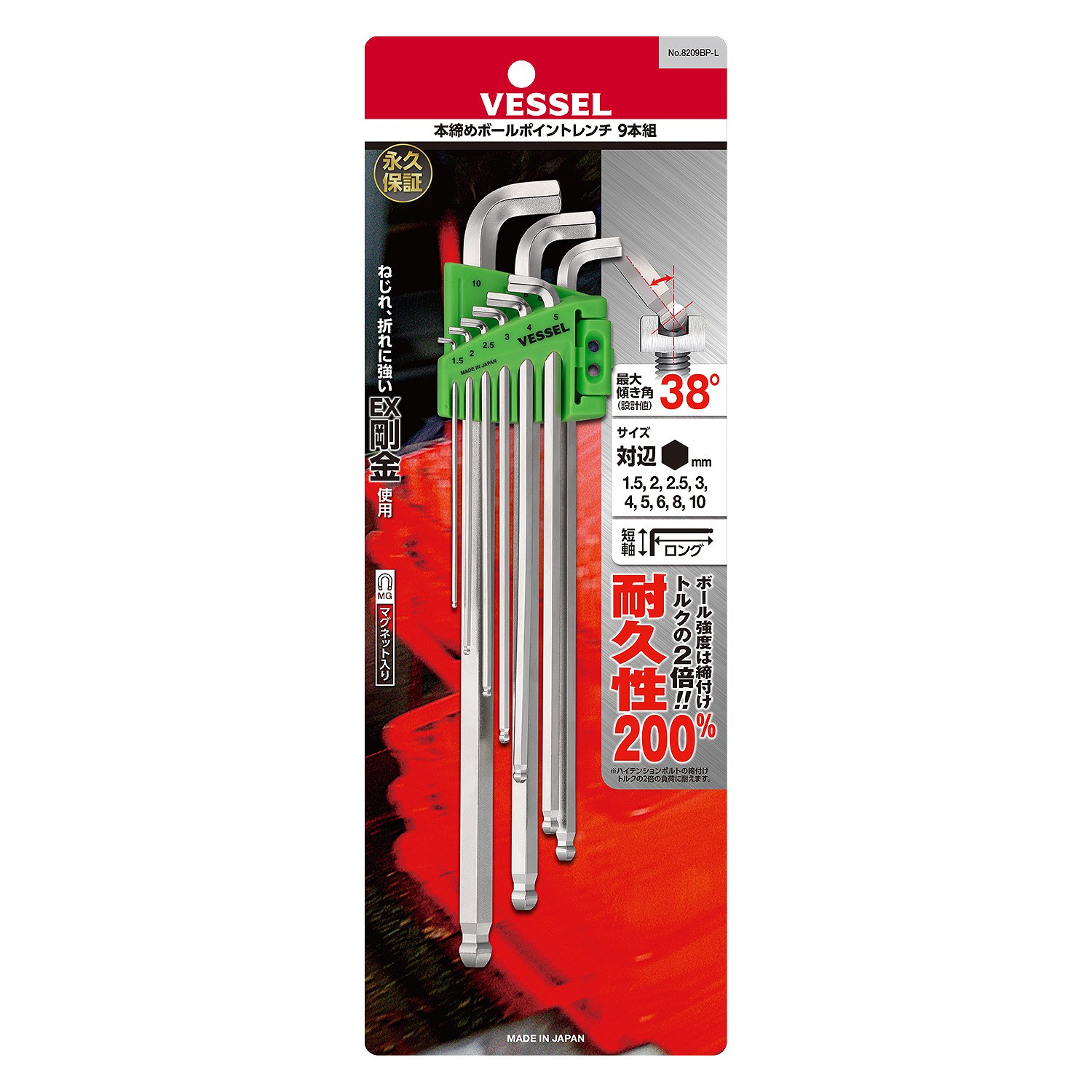 球頭內六角扳手(超長型) 9支裝