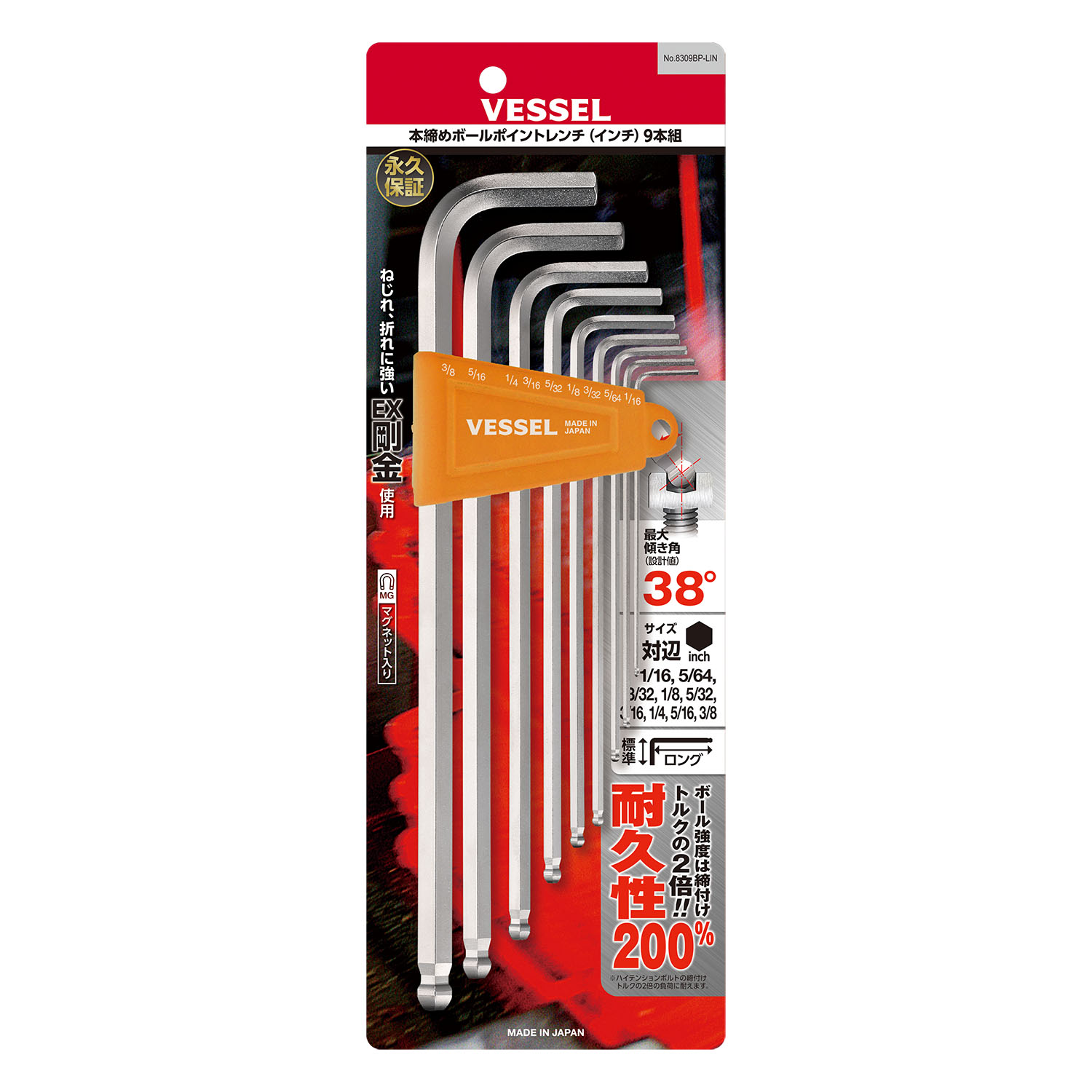 球頭內六角扳手(加長型) (英制) 9支裝